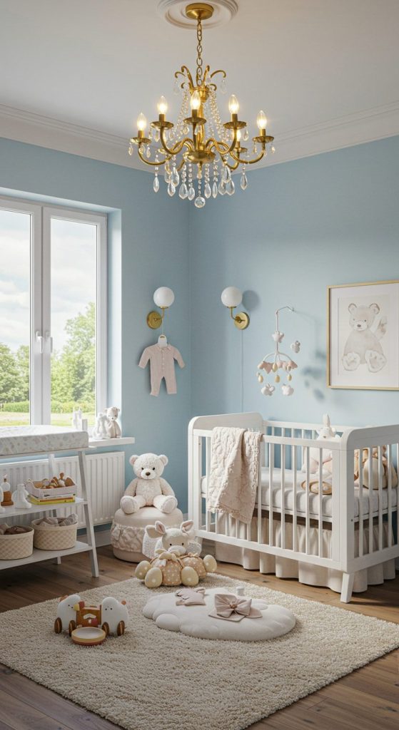 Lighting plays a crucial role in the atmosphere of a nursery. Opt for elegant lighting fixtures like a charming chandelier or soft wall sconces. Consider installing dimmable lights to create a calming environment for nighttime feedings.