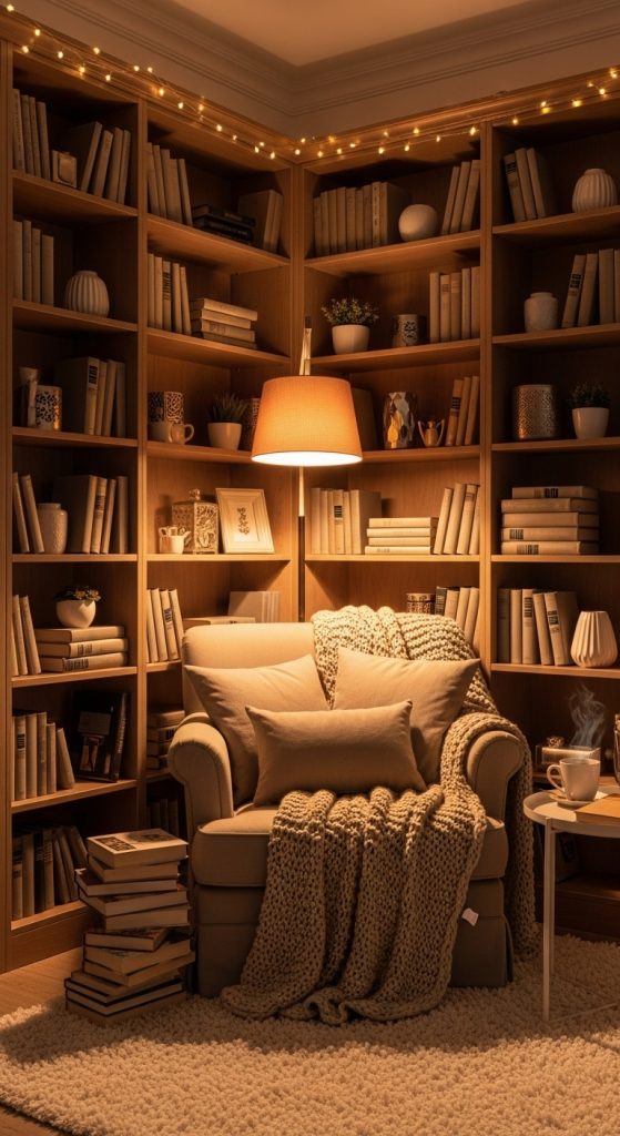 Even if you don’t read often, a cozy corner like this adds character to your space.