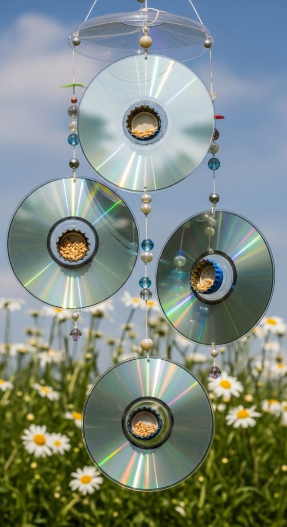 Pinterest Tip: Hang multiple CD feeders at different levels to create a whimsical mobile.