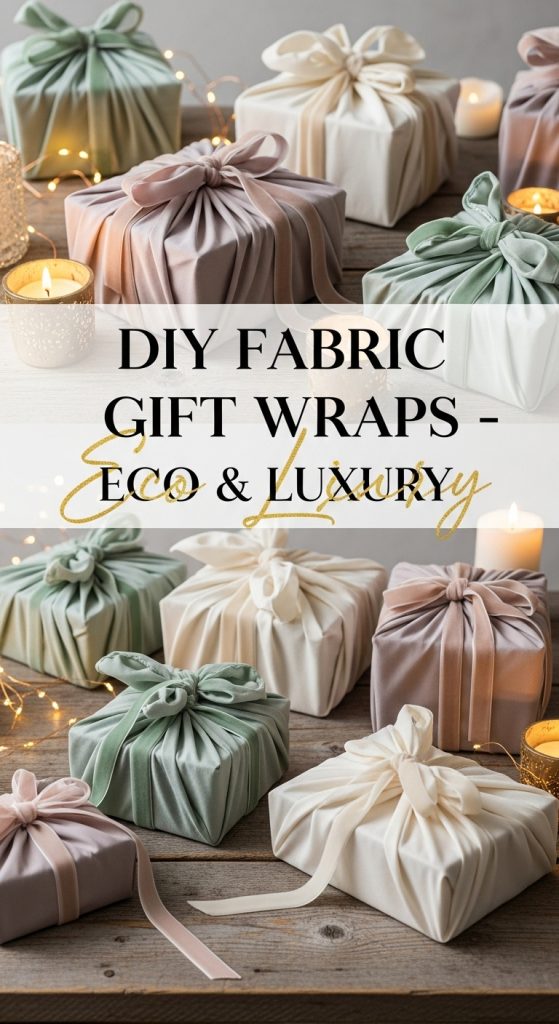 Show a stack of gifts wrapped in colorful fabrics for a festive, sustainable vibe.