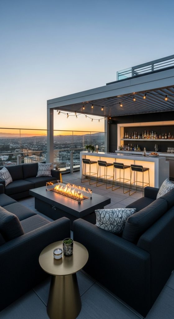 ✨ Why it works: A luxury rooftop lounge feels like a five-star resort right at home—ideal for hosting guests or unwinding after a long day.
