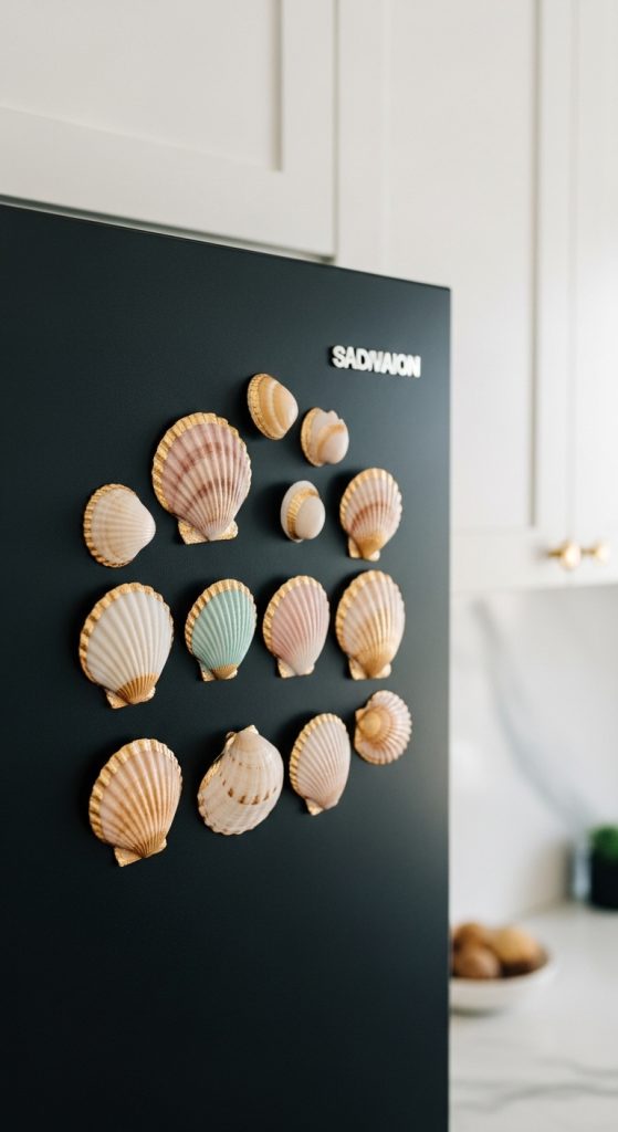 Add a coastal touch to your fridge or magnetic boards with seashell magnets.