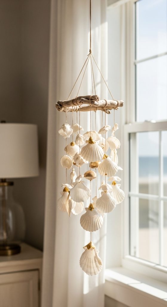 Bring the soothing sounds of the ocean to your home with a DIY seashell wind chime. It’s a fun way to use shells of different sizes and shapes.