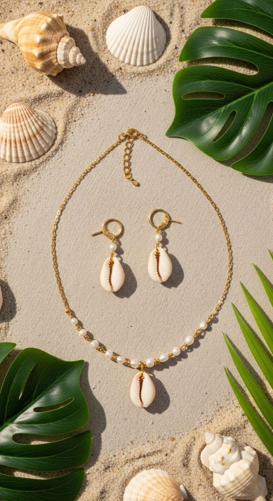 Pinterest Tip: Flat-lay jewelry on a sandy background for a professional, eye-catching pin.