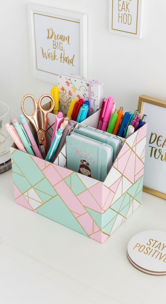 A tidy desk is a productive desk! Make a DIY organizer using recycled boxes.