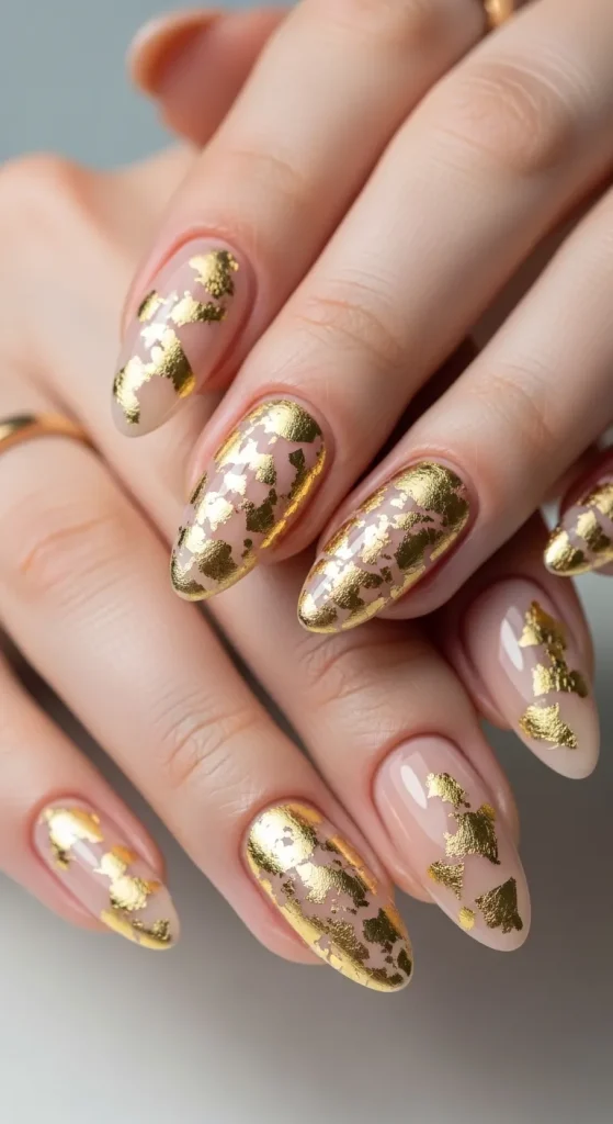 If you love glamorous nail art, gold foil Easter nails are a stunning option.