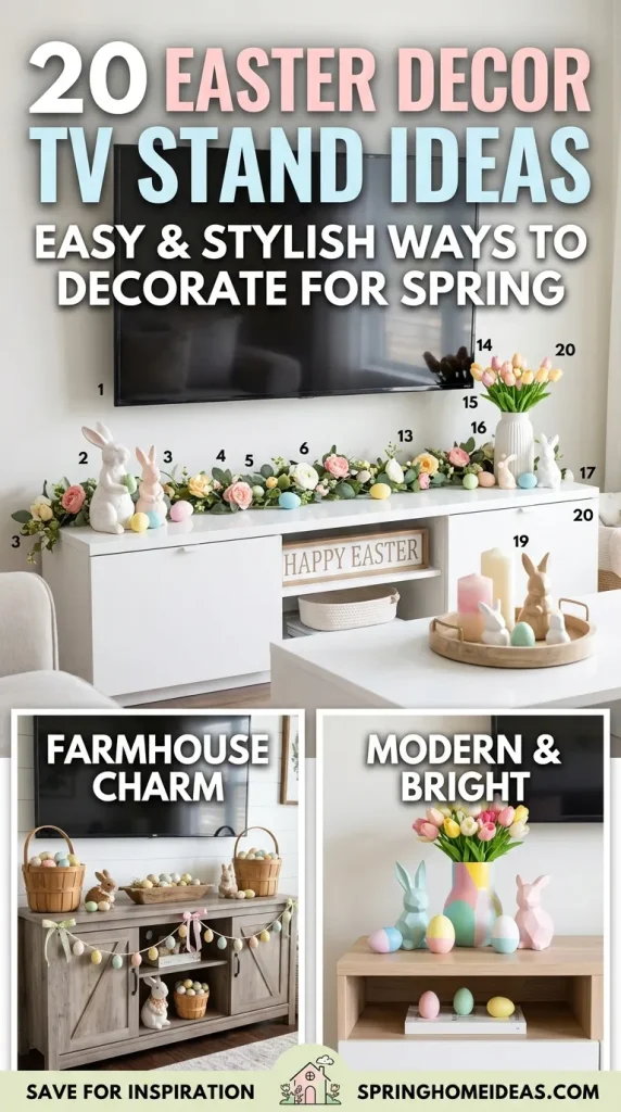 Below are 20 luxury Easter decor TV stand ideas that will make your home feel stylish, festive, and breathtaking.