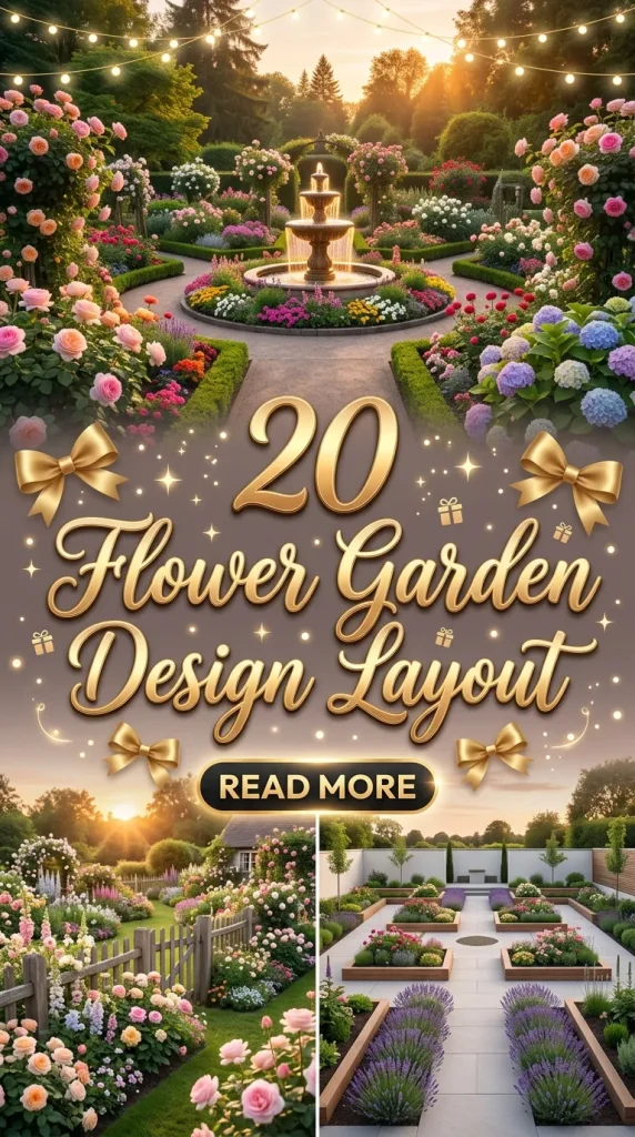 Below are twenty inspiring flower garden design layouts that can turn any outdoor space into a breathtaking floral paradise.