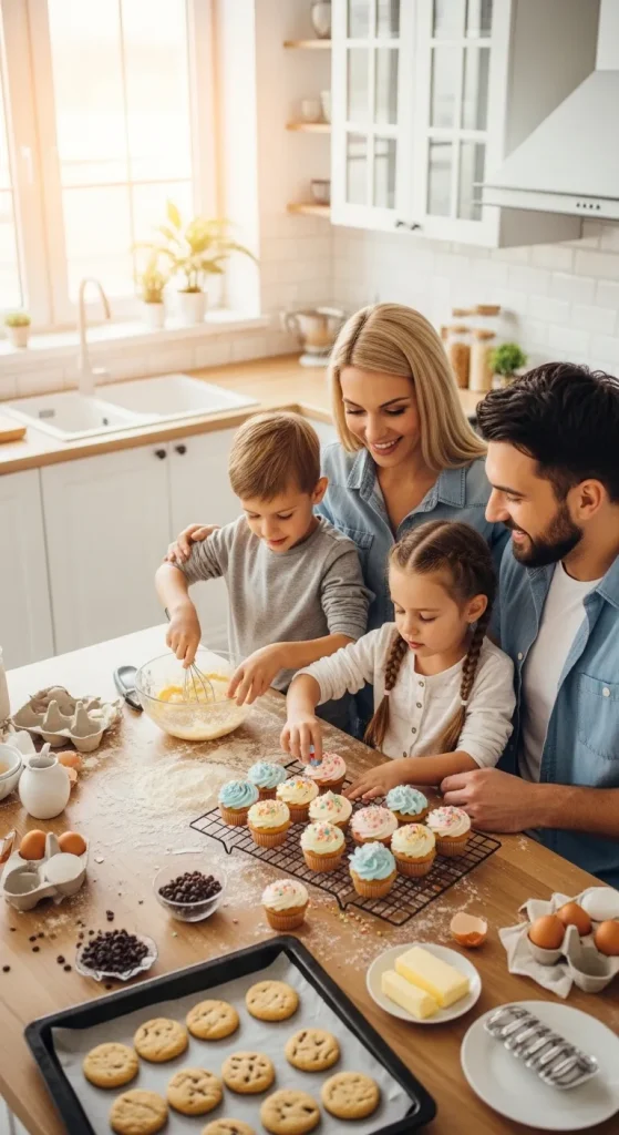 Baking together is both fun and educational. Kids enjoy mixing ingredients, shaping cookies, and decorating cupcakes.