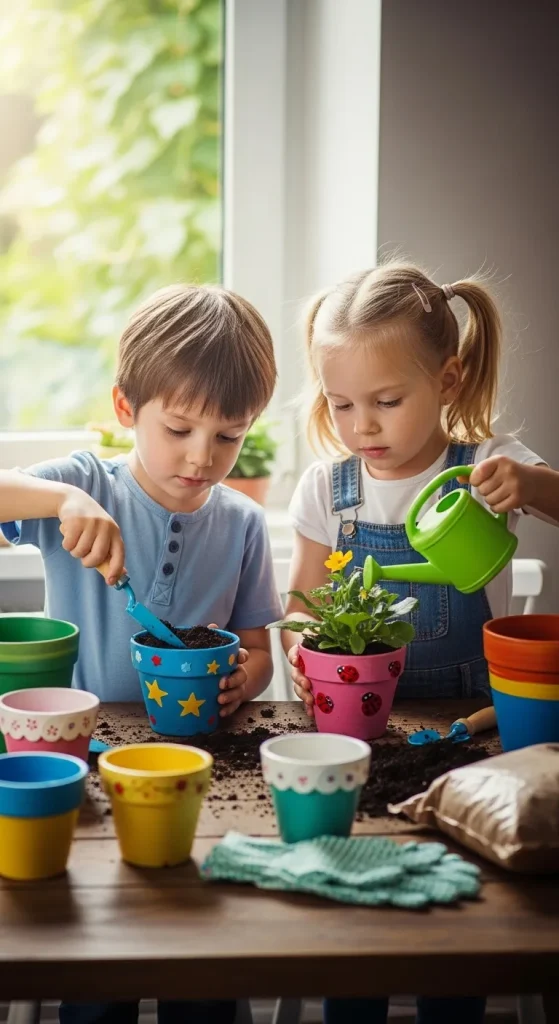 Use small pots, soil, and seeds to grow herbs, flowers, or vegetables. Kids can decorate the pots with paint or stickers before planting.