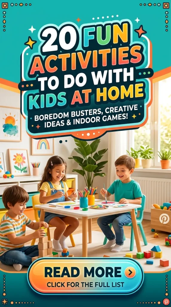 Here are 20 fun activities to do with kids at home that will bring smiles, excitement, and unforgettable memories.