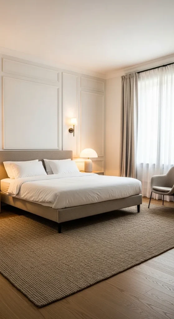 Wall moldings are a hallmark of New Classic design. They add architectural interest without overwhelming the space. Choose subtle white or beige moldings for a sophisticated look or painted panels in a contrasting tone for drama. These details, paired with elegant furniture, instantly make a bedroom feel curated and timeless.