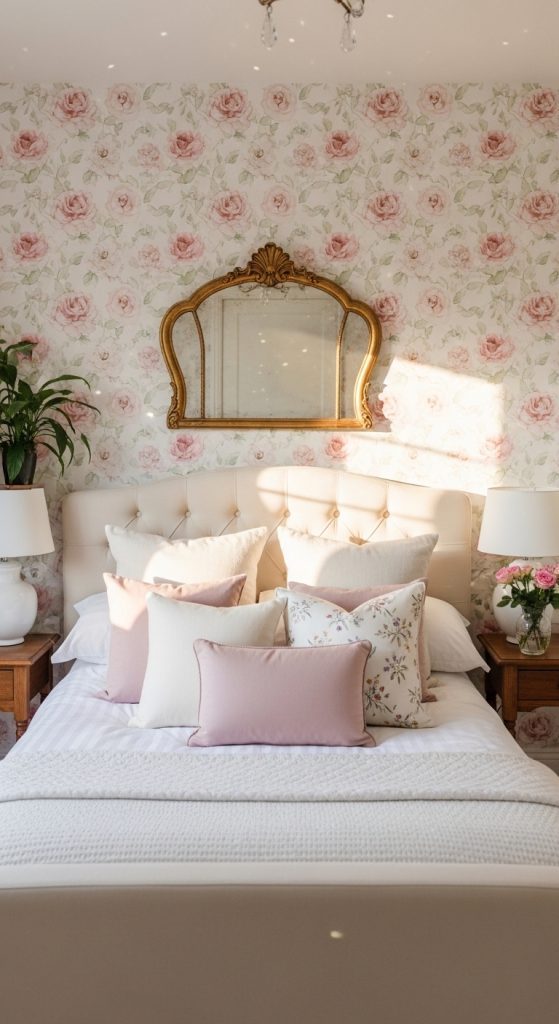 Nothing says spring like flowers. Add removable floral wallpaper behind your bed for a soft statement wall. Choose delicate rose prints, wildflowers, or watercolor-style blossoms.