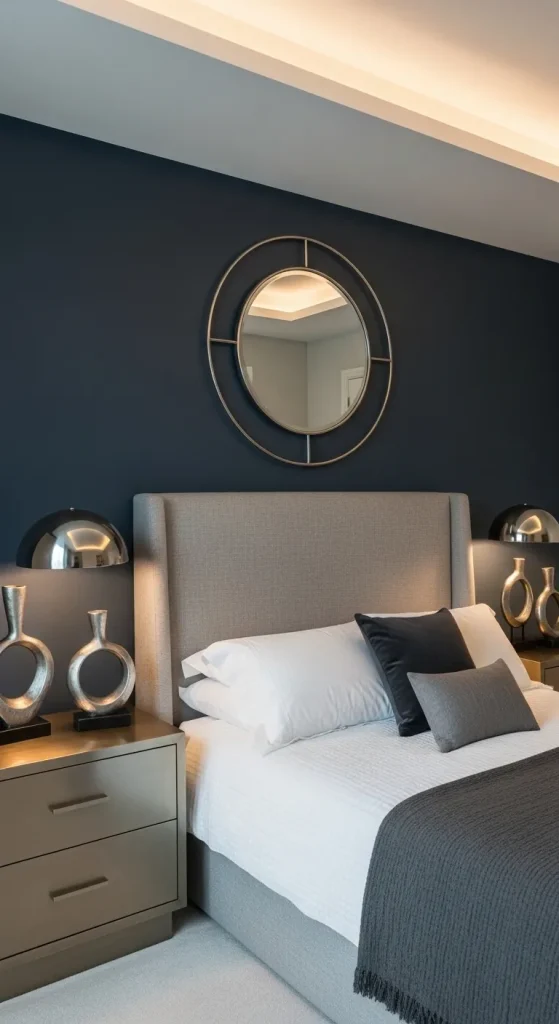 For couples who love a touch of drama, an accent wall can become the bedroom’s focal point. Choose a deep, bold color like navy, emerald, or charcoal for behind the bed. Pair it with neutral walls, minimalist furniture, and metallic accents to maintain balance. Complement the wall with artwork or a statement headboard to make the room feel personalized and stylish without overwhelming the senses.