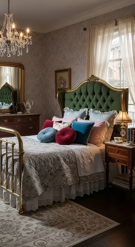 Vintage-inspired bedrooms carry a timeless elegance perfect for couples who love nostalgia. Antique furniture pieces, ornate mirrors, and patterned wallpaper can create a romantic, storybook vibe. Blend pastels with deep jewel tones for a sophisticated look. Consider adding classic elements like a chandelier, tufted headboard, and vintage bedside lamps. The charm of this style lies in its ability to feel both luxurious and personal.