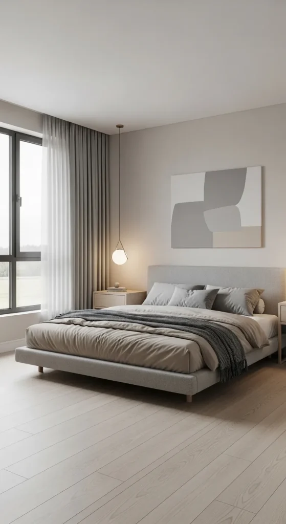 Minimalism doesn’t mean boring—it’s about creating a serene space where every element has purpose. Choose neutral tones like soft grays, creams, and beiges. Incorporate sleek furniture with clean lines, such as a low-profile platform bed, and avoid clutter with smart storage solutions. Add a pair of matching bedside tables and pendant lights for symmetry. The key is balance: create a peaceful, visually calm environment where both partners feel relaxed.