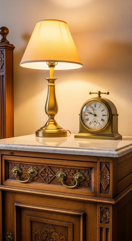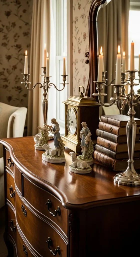 Finally, the finishing touches make an antique bedroom truly captivating. Incorporate vintage clocks, candelabras, porcelain figurines, or decorative boxes to bring personality and authenticity. Antique books, old globes, and framed black-and-white photographs add charm, making the room a cozy blend of elegance and history.