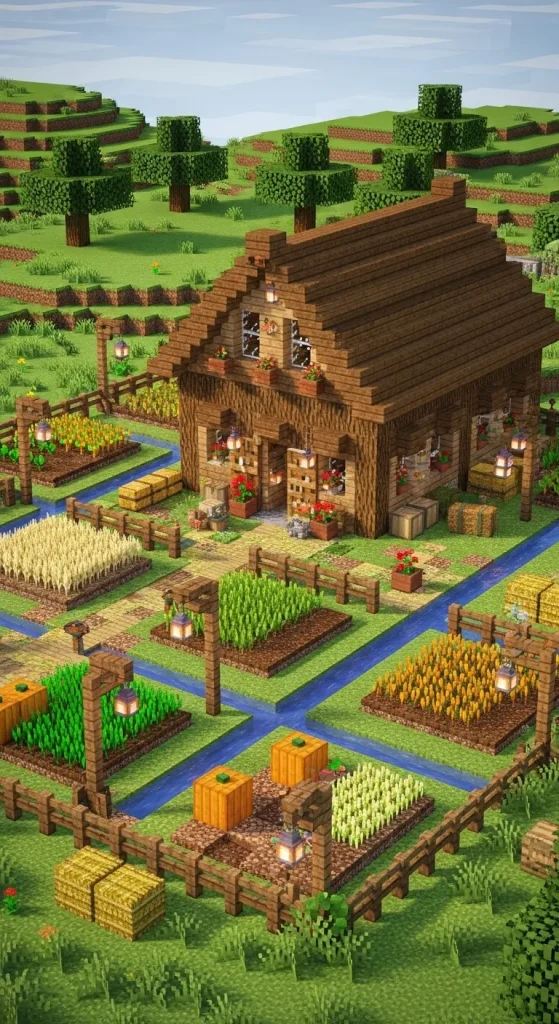 For lovers of agriculture, a Rustic Farming Hub brings together functionality and charm. Build wooden barns, add crop plots with water channels, and surround the area with fences. Decorate with hay bales, lanterns, and flower pots. This DIY area makes farming efficient while keeping your Minecraft world picturesque.