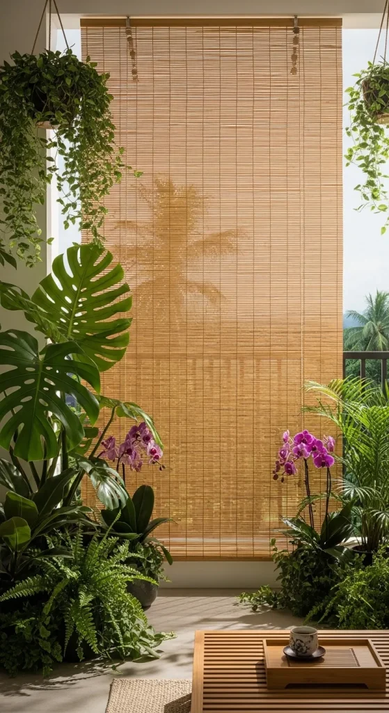 Bamboo panels are eco-friendly, lightweight, and perfect for tropical or Zen-inspired spaces. These roll-up screens can be easily installed along fences, decks, or balconies. Their natural tones complement lush greenery, and the vertical bamboo stalks provide a sense of height and enclosure. Pair with lantern-style lighting for an evening oasis vibe.