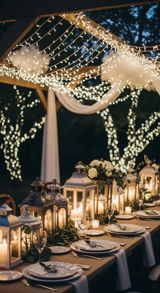 Lighting sets the mood like nothing else. Dollar Tree string lights, lanterns, and candles can transform any venue into a magical wonderland. Hang them from ceilings, wrap them around pillars, or scatter them across tables to create a soft, romantic glow that looks like a luxury wedding setup.