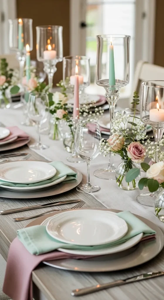 Set the mood for your reception with charming Dollar Tree tableware. Metallic or pastel-colored plates, napkins, and cups can be paired with DIY placemats and name cards for an elegant effect. Accent the table with glass candle holders or small vases to create a cohesive, Instagram-worthy look.