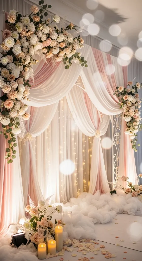 A stunning backdrop can elevate your wedding photos. Dollar Tree’s tulle, fairy lights, and artificial flowers can be combined to create a dreamy photo booth or ceremony backdrop. Drape the tulle over a simple frame, intertwine flowers and lights, and you have a magical setting that looks high-end without the cost.