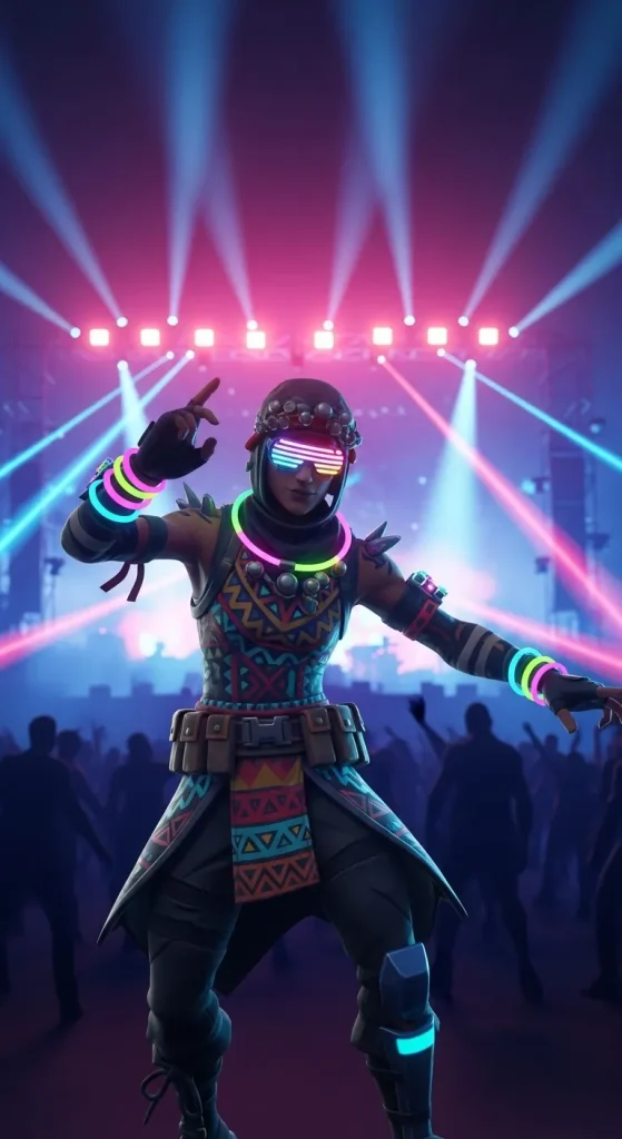 This skin would feel perfect for players who want their Fortnite character to look like the star of an underground neon dance party.