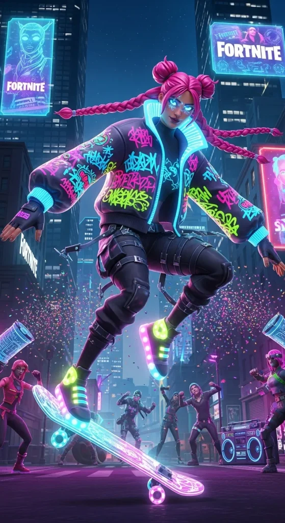 Designs like these could easily become fan favorites because they capture the fun and energetic spirit that Fortnite players love. The combination of nightlife aesthetics and futuristic fashion opens the door to endless creative possibilities.