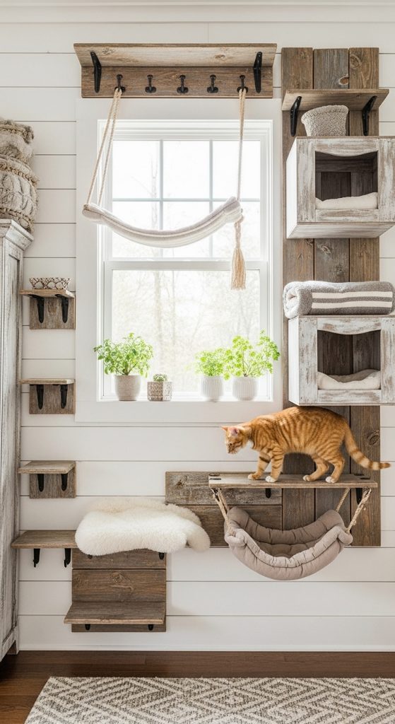7. Floating Cat Hammocks and Window Shelves