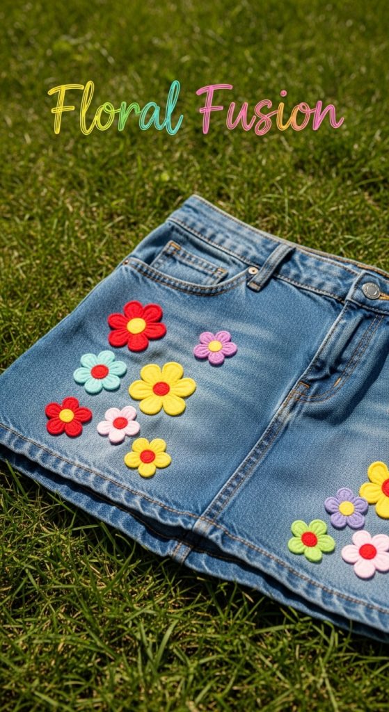 8. 🌻 Appliqué Flower Denim Skirt