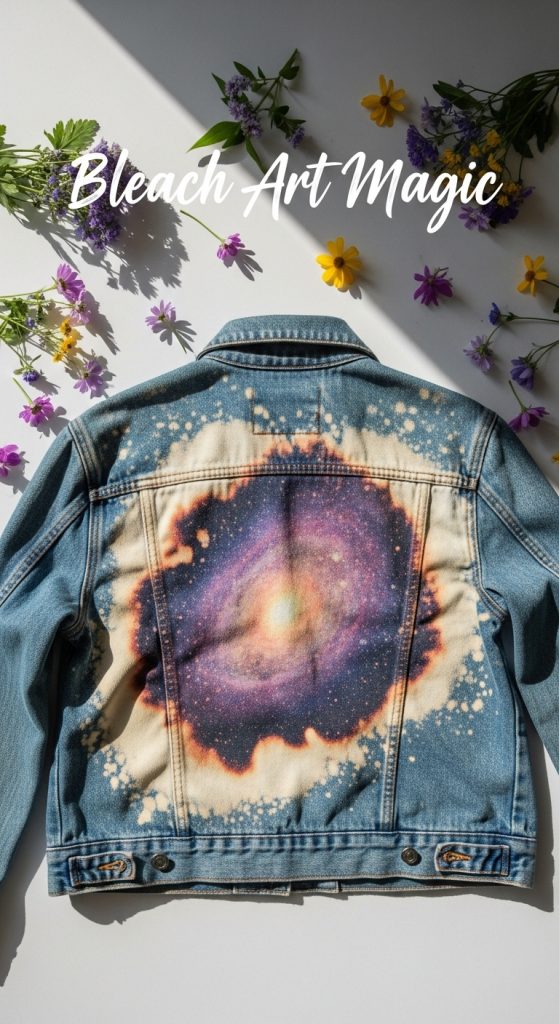 Grab an old denim jacket and create unique art using bleach pens or spray bottles. Draw floral motifs, abstract shapes, or even write a quote.