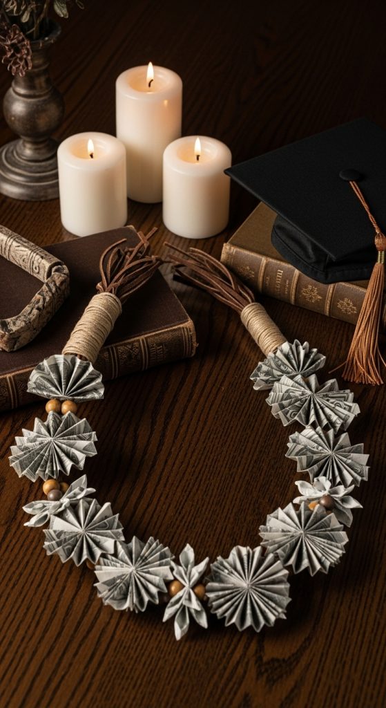 Below are 10 unique money leis for graduation for boys—each with a distinct style, easy crafting instructions, and ideas to personalize based on your graduate’s personality. Whether he’s sporty, stylish, funny, or sentimental, there’s a money lei here that will suit him perfectly.